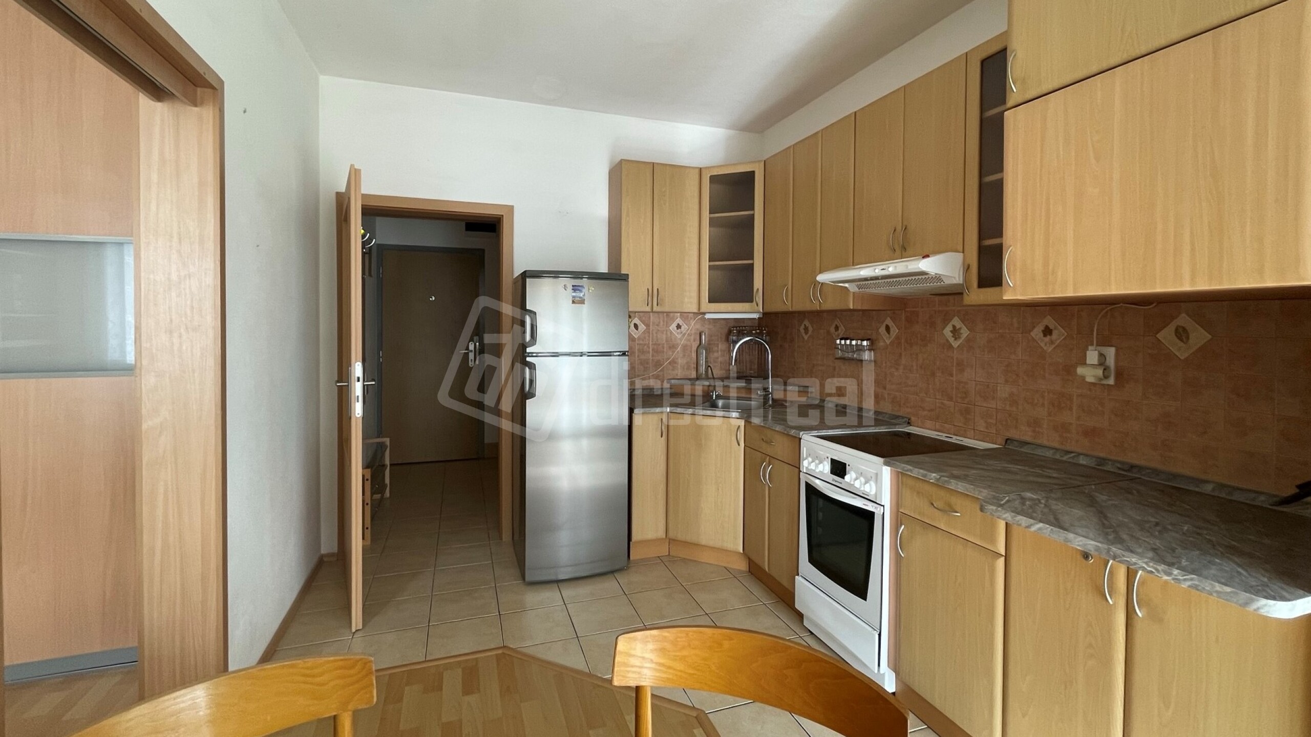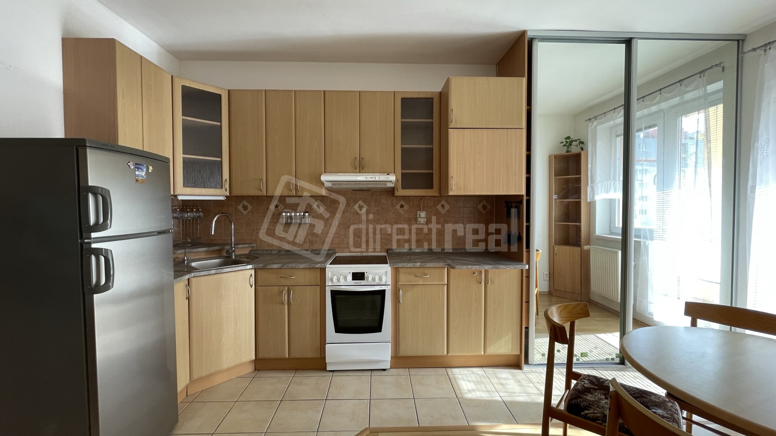 Je to pekný slnečný byt s dostatkom úložného priestoru, vďaka dvom rooldor šatníkom. Vstupná chodba je vybavená vešiakom s botníkom. Kuchyňa je veľmi priestranná s L linkou, chladničkou, elektrickým sporákom a rúrou. Vďaka zrkadlovým šatníkom (špajzou, potravinou skriňou) je miestnosť opticky zväčšená. Je tu výstup na balkon, čo je výhodou, uložíte si tu napr. aj bicykel.