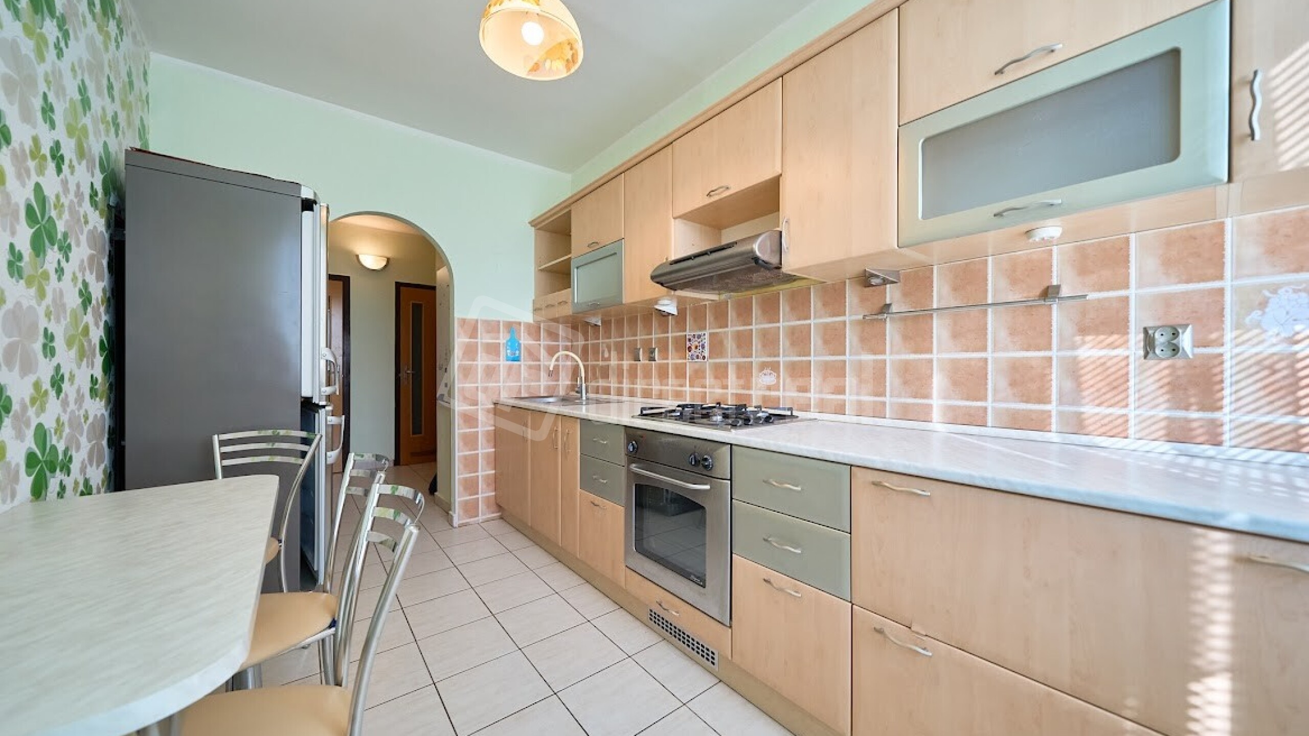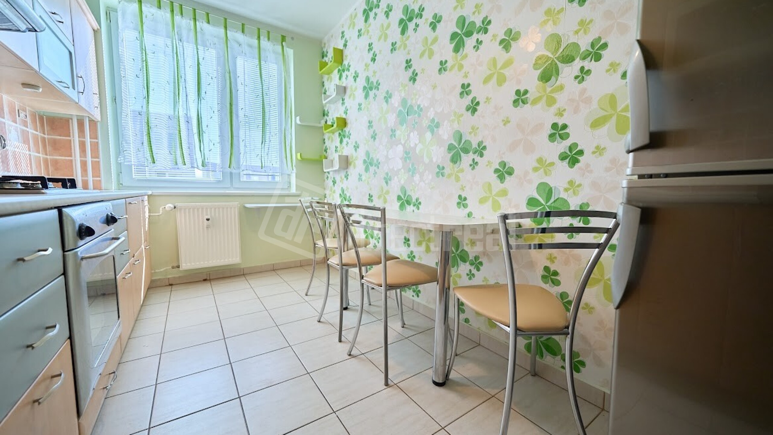 Byt pozostáva z obývacej izby, spálne, dvoch detských izieb, vstupnej chodby, kúpeľne, WC, kuchyne, špajze a dvoch skladových priestorov. Z obývacej izby je prístupná priestranná loggia. Byt je po rekonštrukcii, ktorá zahŕňala výmenu okien, novú elektroinštaláciu, v izbách sú plávajúce podlahy, v spálni priestranná vstavaná skriňa s dostatkom úložného priestoru, v detských izbách sú vstavané skrine. V kuchyni je plynová varná doska a elektrická rúra, chladnička. V kúpeľni je rohová vaňa.