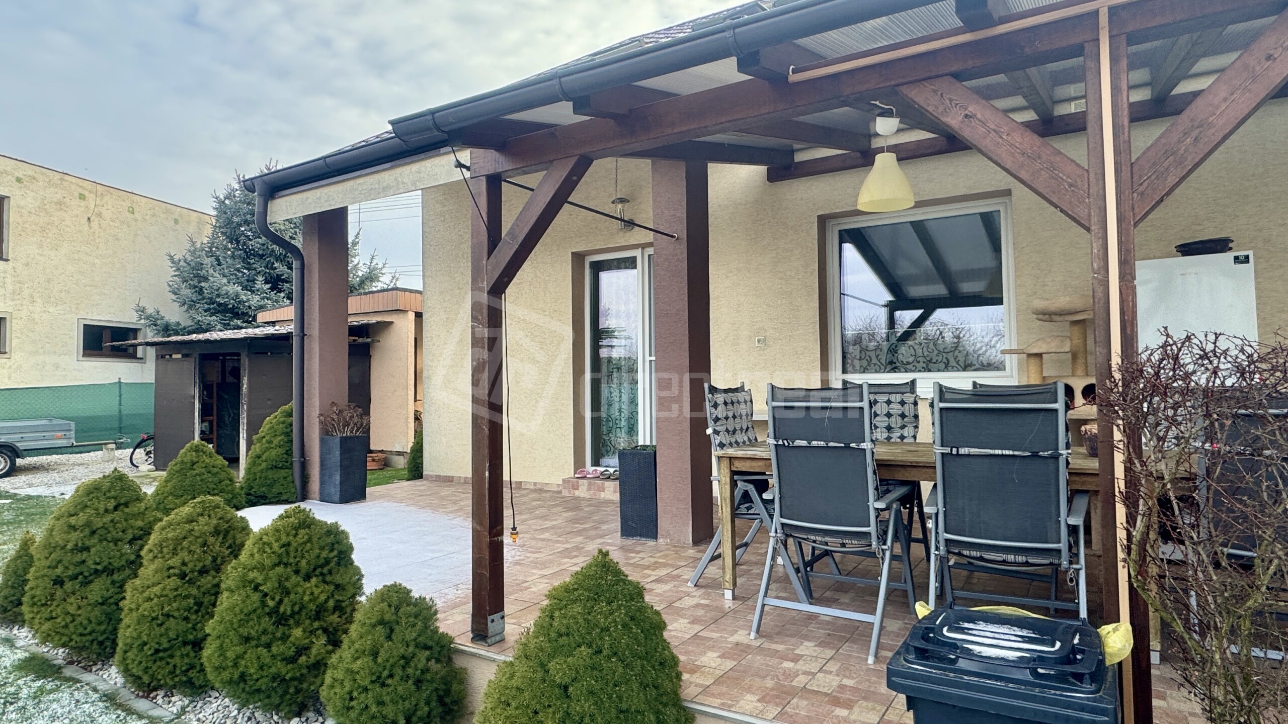 Exteriér domu je navrhnutý ako priestor pre oddych aj spoločenské stretnutia. Priestranná terasa ponúka ideálne miesto na relax či večerné posedenie s rodinou a priateľmi. Na pozemku sa nachádza záhradný domček, dve parkovacie státia, úžitková záhrada a vlastná studňa, ktoré dotvárajú komfort a praktickosť tejto nehnuteľnosti.