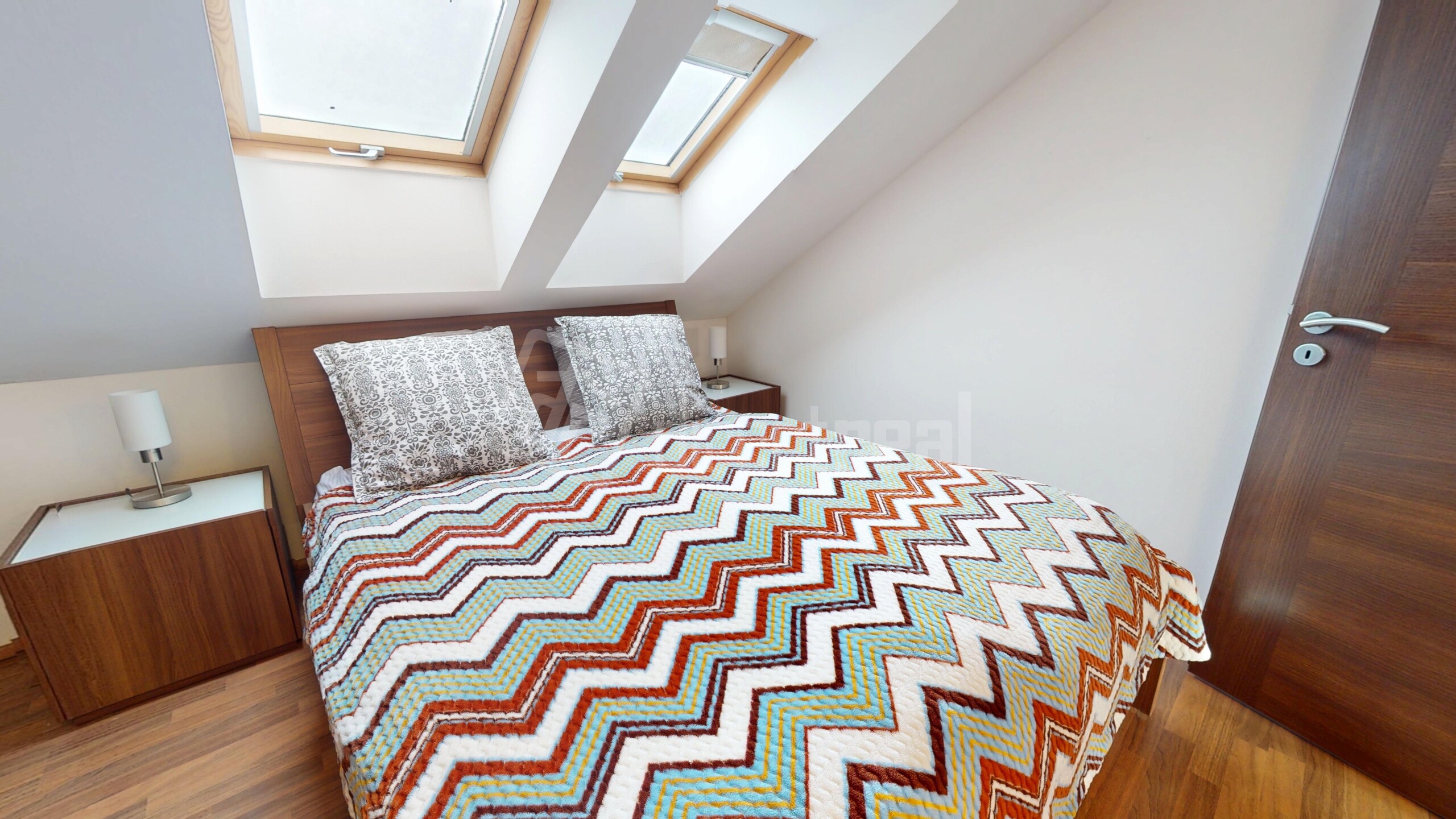 - Poschodie ponúka tri samostatné izby poskytujúce maximálne súkromie a komfort, doplnené kúpeľňou s vaňou a toaletou.