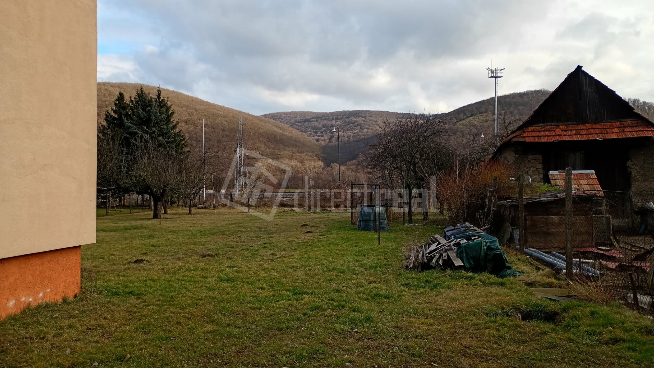 Dom sa nachádza na veľkom rovinatom pozemku vedľa hlavnej cesty.