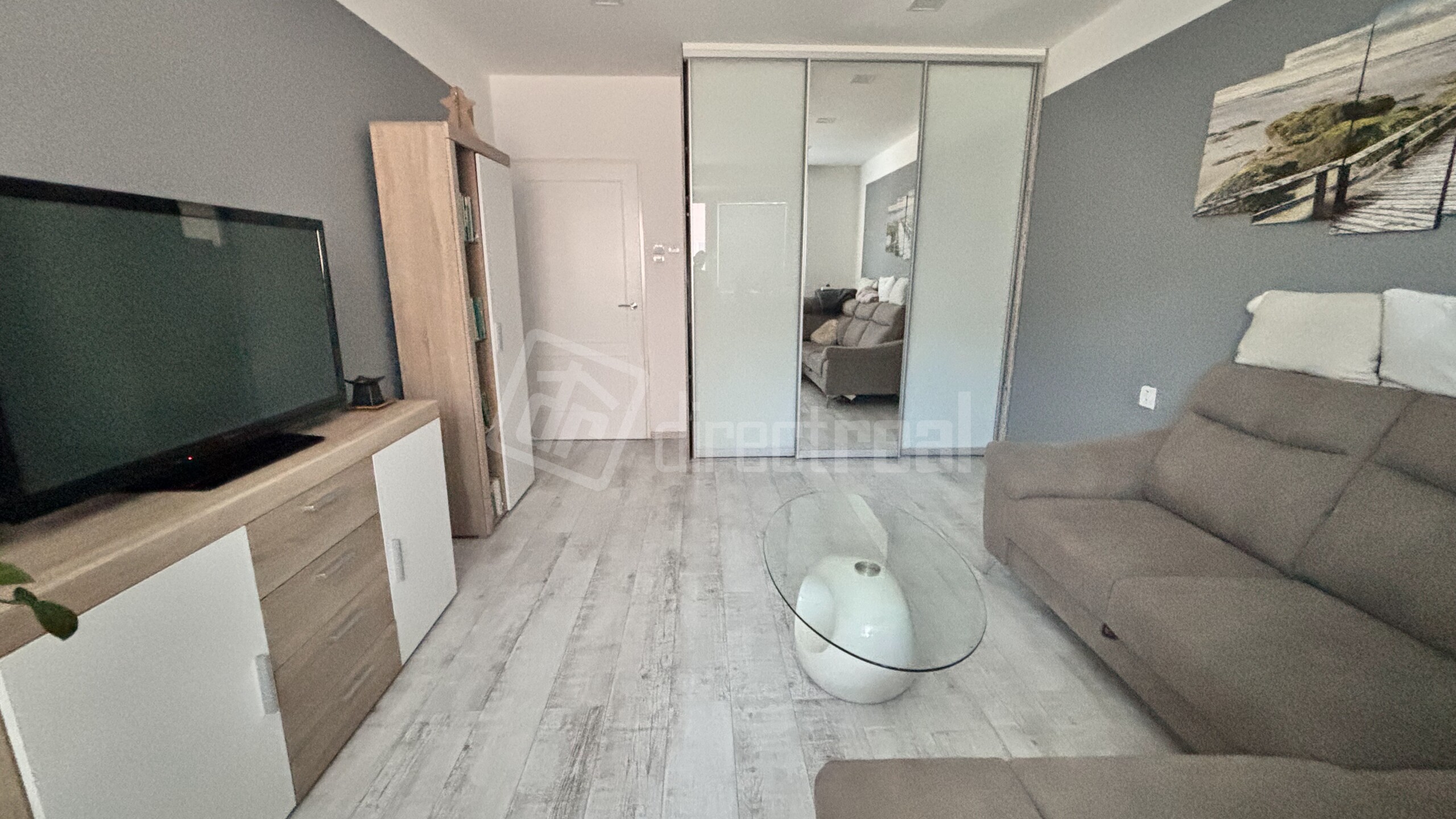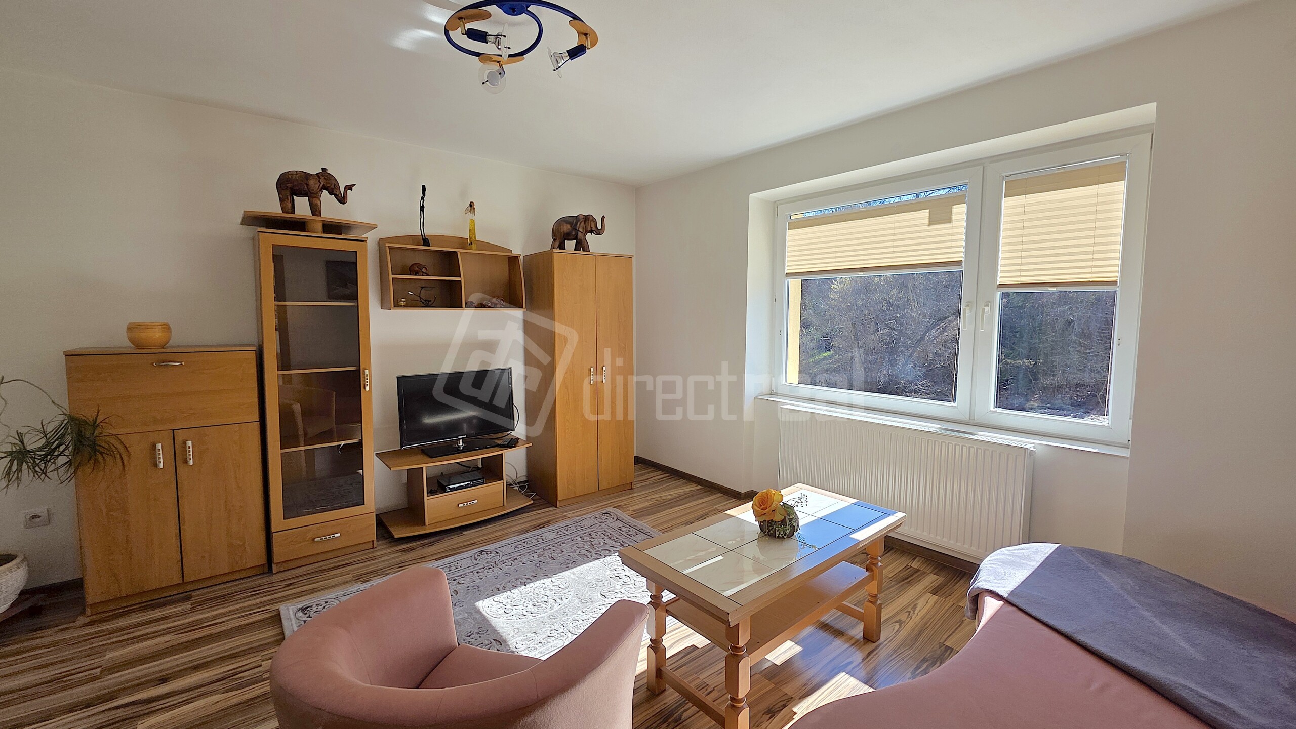 izba orientovaná do tichej strany s menšou izbou, otvorená kuchyňa s obývačkou a ďalšia priestranná izba, pivnica, byt nemá balkón.